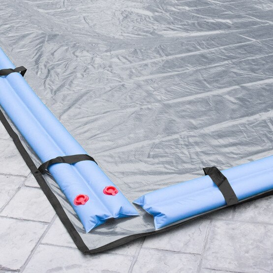 Protect your in-ground swimming pool with the Pool Mate Ultra solid winter pool cover. The polyethylene material, which does not allow water to pass through, is constructed with a 12x14 scrim (threads per square inch). Covers with a higher scrim will have a better overall quality, strength, and durability. The material weighs 4.5 ounces per square yard which is important because heavier covers will be affected less by extreme elements. The topside of this cover has been treated to inhibit UV rays and the bottom of the cover is black to help prevent algae growth. This cover has an additional five foot overlap to ensure space for water bags on the deck and slack in the cover. A 2 inch marine-grade nylon binding boarders the entire cover providing enhanced protection from wear and tear. Water bag loops made of the same nylon binding are placed every four feet around the perimeter of the cover. The Pool Mate Ultra comes in multiple colors (depending on pool size and availability) and is covered by a twenty-year warranty.