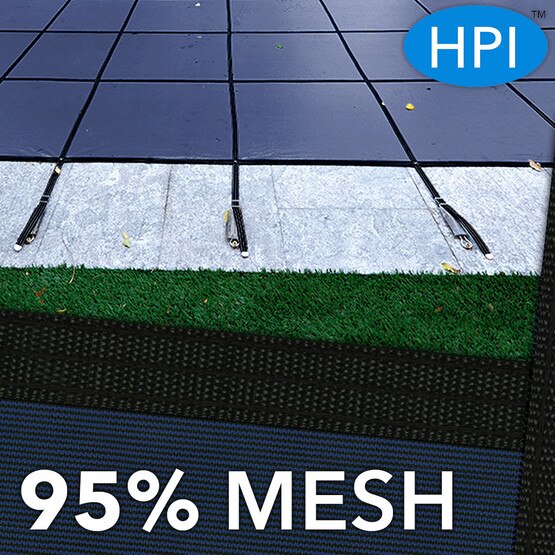 Yard Guard safety covers are manufactured with the highest standards in the industry and are designed to keep your pool safe and clean. This cover is reinforced with heavy-duty webbing along the top and bottom of every seam. Unlike other safety covers, which feature webbing on only one side of the cover, Yard Guard's webbing on both sides increases the strength of the cover by double. Rub strips are placed where the strapping would go over the coping to prevent wear and tear. Marine-grade white triple line stitching is used to secure all straps with cross and box tack at all perimeter stress points. The Yard Guard BLOC Mesh 95 safety cover features a 95% shade rated, heavy-duty, porous mesh. Shade rating is the percentage of sunlight the cover blocks from entering your pool. The more sunlight that is blocked by the cover, the less algae that will be able to grow in your pool. This mesh also features a 41 x 20 scrim count (threads per square inch), which is a measure of how tightly woven the material is. The material used is also 4.4 oz/yd2 and 12 mills thick. All Yard Guard covers are manufactured using the most modern equipment, including a computerized cutting and shaping system. All covers, throughout every stage of production, are quality checked and signed for before final packaging. The hardware included with this cover is prepackaged in individual poly bags, each containing a brass plug, brass screw, spring, buckle, and vinyl sleeve.