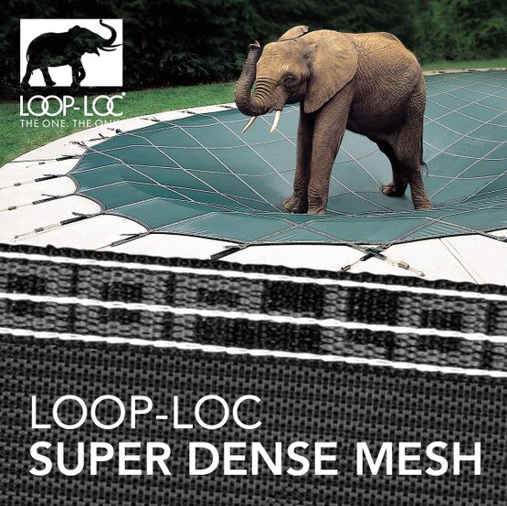 Loop-Loc safety covers are built super-strong using the highest quality materials and workmanship. Double perimeter webbing and double-thick straps give these covers an incredibly high break strength. The large X-tacking on Loop-Loc straps is sewn manually, and with contrasting white thread, so that not a single stitch is missed, ensuring maximum strength. These covers are also made from a fabric of 87% black yarn for superior UV stability. Extremely high-strength, non-corrosive type 302 grade stainless steel springs, for superior weight-bearing capacity, are included with every Loop-Loc cover. A Loop-Loc always stays tight, clean and beautiful on your pool, and is the only pool cover proven safe and strong enough to support an elephant! Loop Loc Covers not only meet, but also exceed ASTM ratings and show an unmatched commitment and dedication to the safety of your children and pets. All Loop Loc covers have undergone extensive outside testing through Underwriters Laboratories and have earned the U.L. Seal of Approval for Safety Swimming Pool Covers. If you can not locate your pool's shape or size on our website, please give us a call. We can have a custom safety cover made to fit your pool.